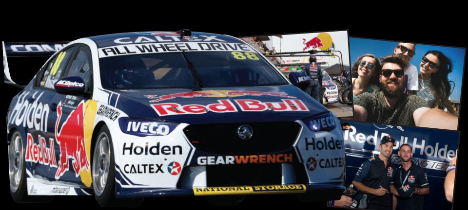 This winning prize also includes return airfares and transfers from any capital city in Australia or New Zealand to the Bathurst 1000, as well as four nights’ accommodation and $500 spending money from VISA. That’s not forgetting the Red Bull Holden Racing Team merchandise pack and autographed memorabilia for Shane and his three friends, which includes a Red Bull Holden Racing Team polo, cap, framed wall memorabilia and for Shane - an actual racing car boot signed by Shane Van Gisbergen and Jamie Whincup.