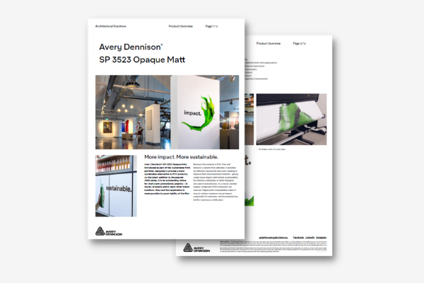 SP 3523 Opaque Matt, introdotto come parte del portfolio Sustainable Print, è stato progettato per offrire un’alternativa più sostenibile ai prodotti in PVC. Ultima aggiunta alla popolare serie 3000, è una scelta eccellente per grafiche promozionali di breve durata: presso punti vendita, eventi e in numerose altre location indoor.